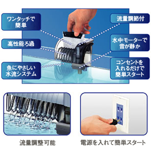 高性能のトリプルろ過(物理・生物・吸着)により、魚に最適な水質をつくります。