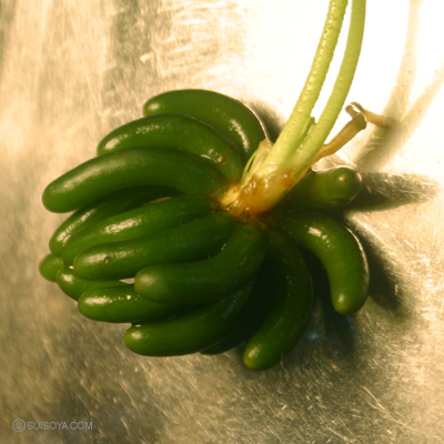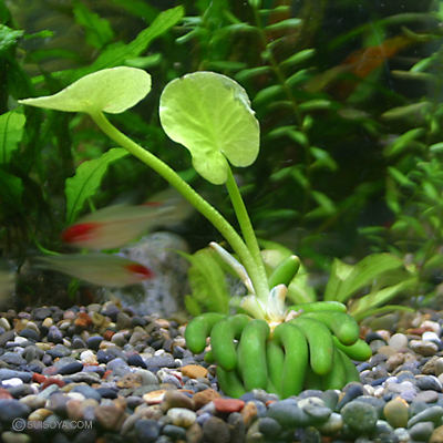 ・バナナの様な形状をした殖芽から、丸い葉の水中葉や浮葉を出します。