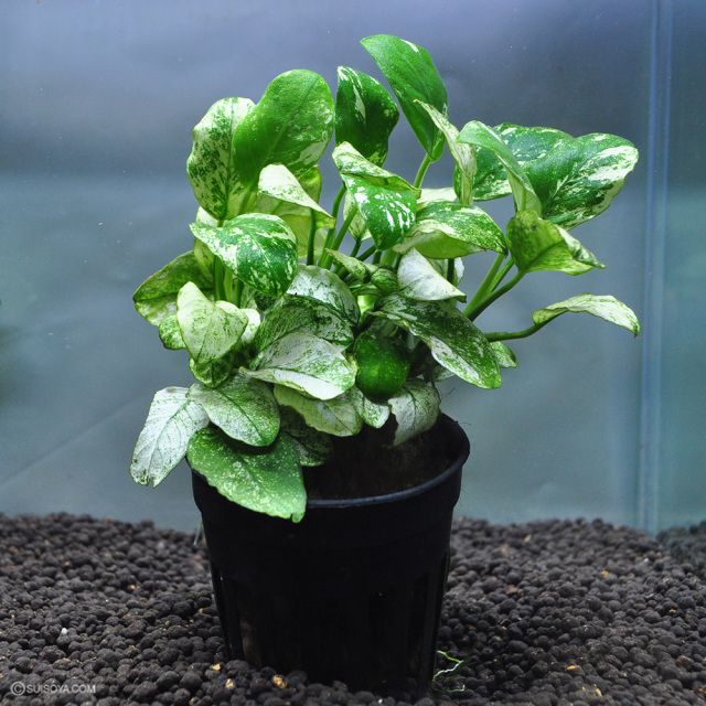 ・斑入りの葉がとても見ごたえのある種、アヌビアス・ナナ ピント (POT)になります。