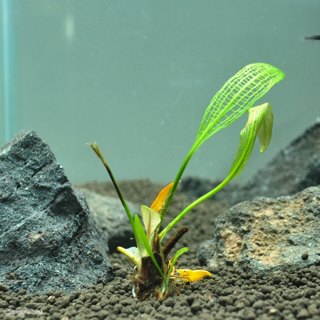 ・レースプラントの名で有名な、葉が網目模様をしている珍しい水草です。