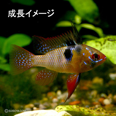 ●アピストグラマに近縁なドワーフシクリッドの一種で、アピストグラマに比べて比較的大人しく他の魚との協調性も良いので幅広い水槽で育てることが出来ます。